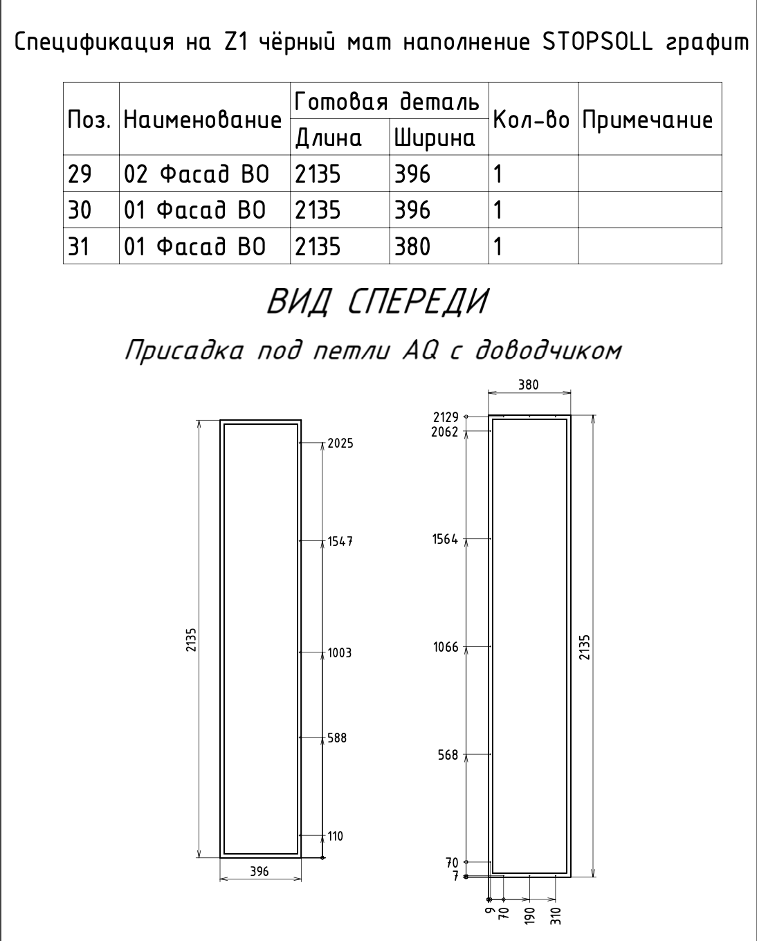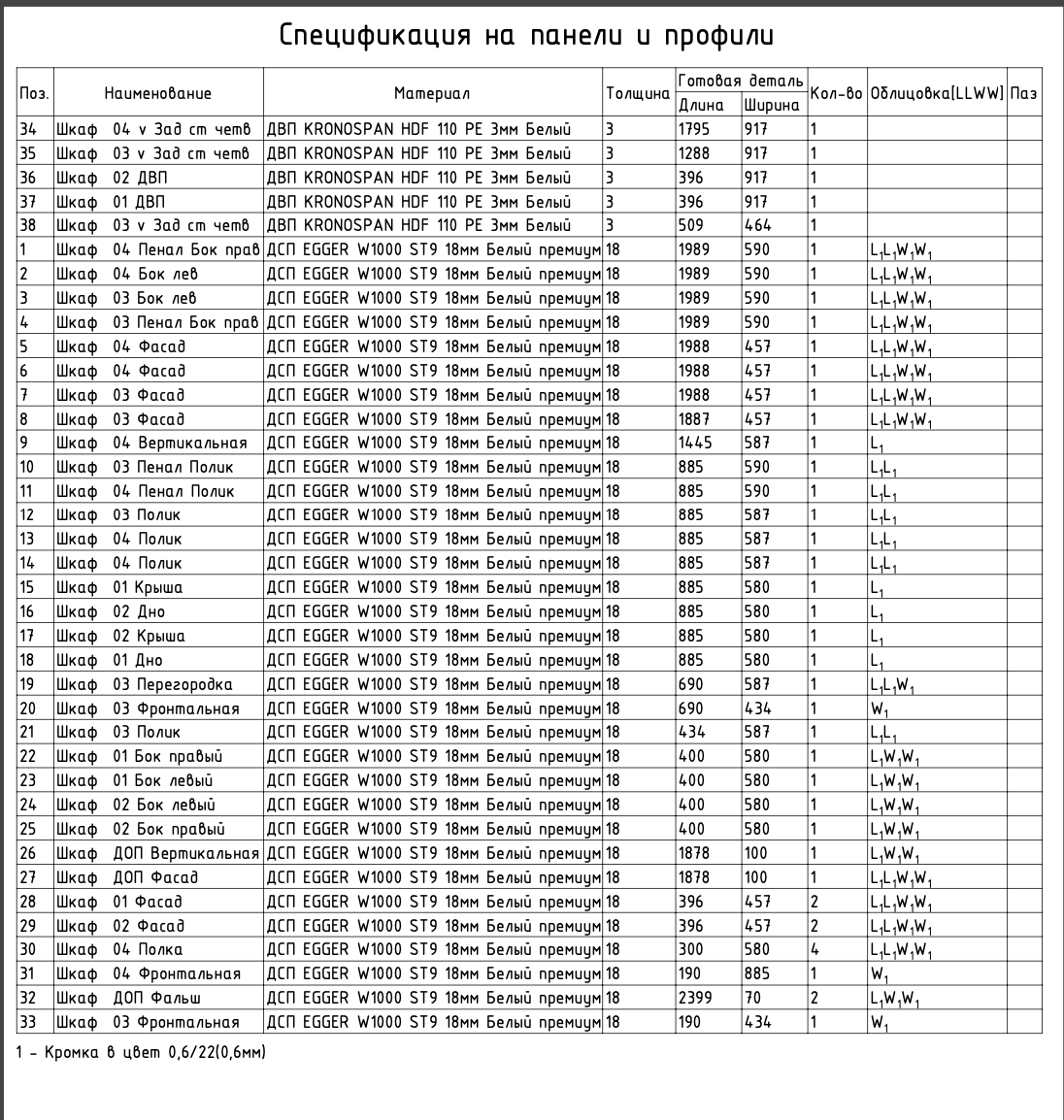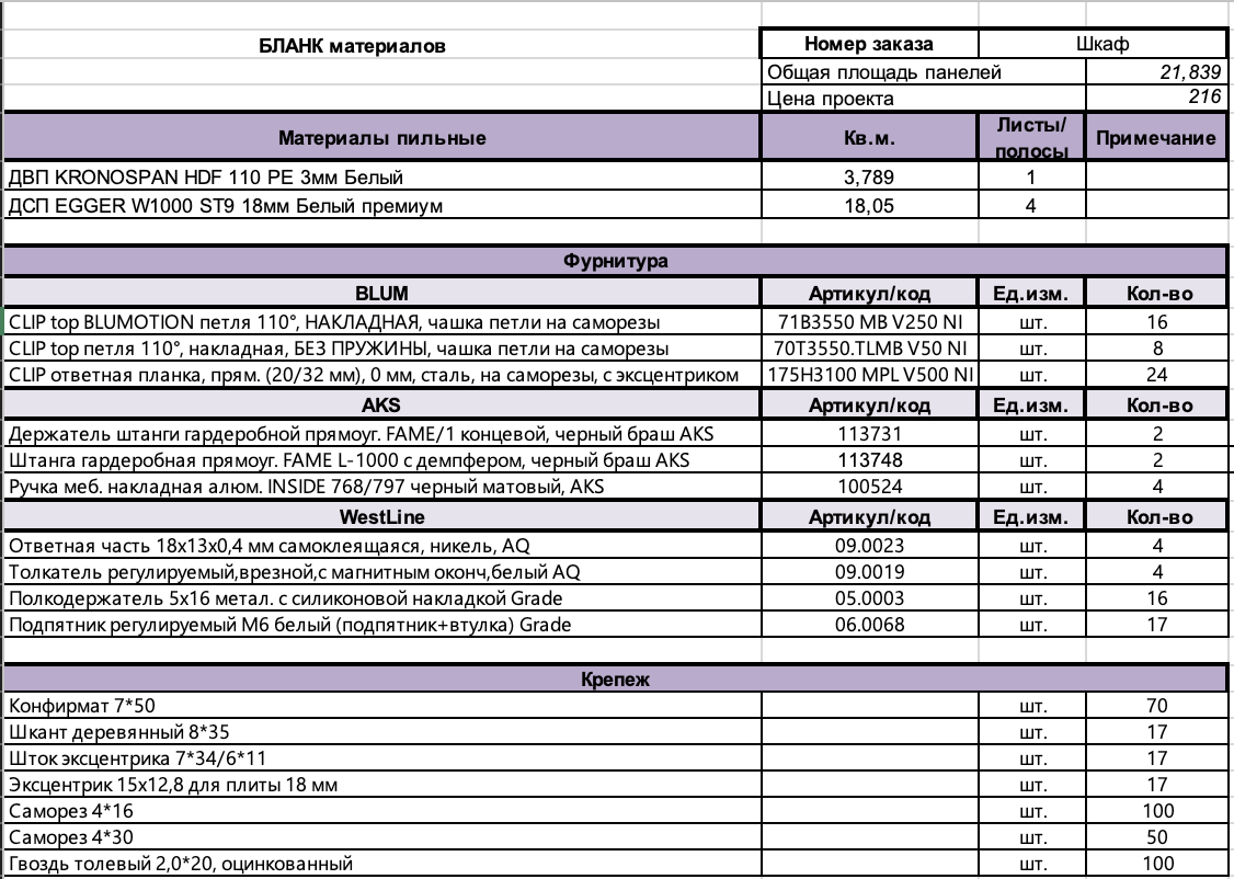 Ведомость фурнитуры