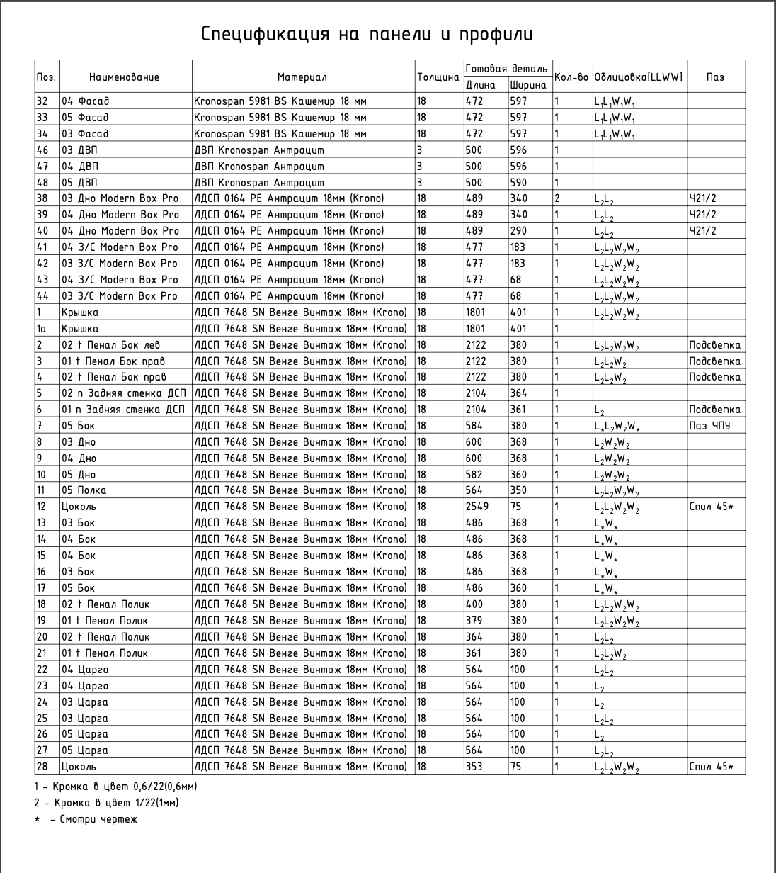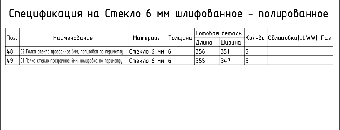 Спецификация на распил