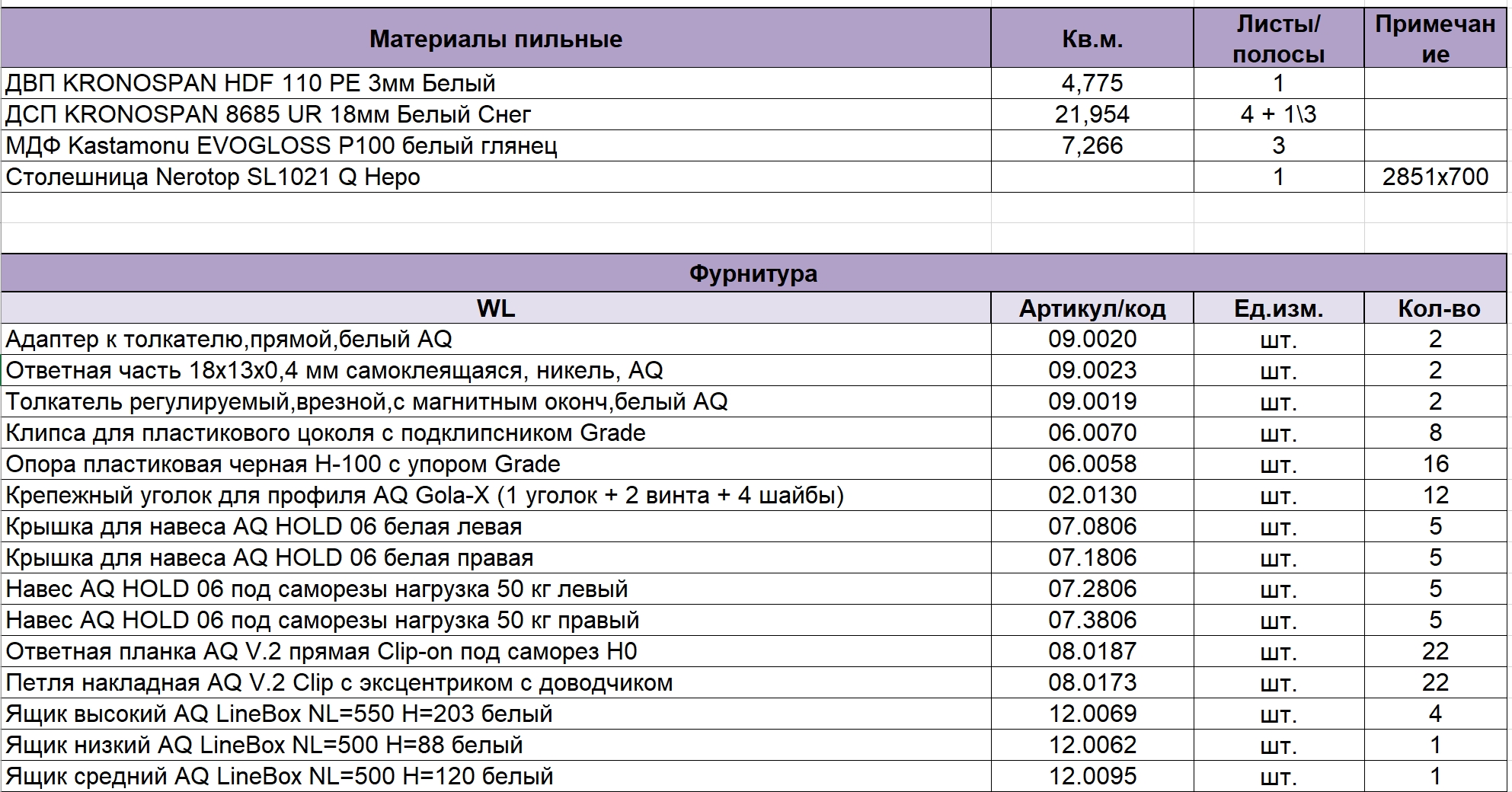 Приобретите фурнитуру самостоятельно, следуя спецификации.